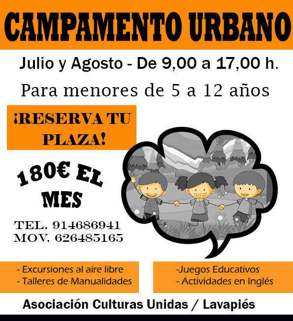 Pues te lo ponemos fácil, nos lo mandas al campamento urbano de Culturas Unidas donde además de pasárselo bien, va a aprender jugando, va a hacer excursiones, talleres, aprenderá inteligencia emocional, meditará para saber canalizar sus emociones, se desarrollará en un ambiente de inglés lúdico y será el mejor recuerdo de su vida.